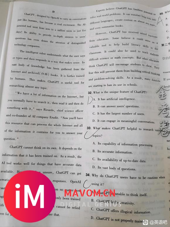 【英语】34题选A是不是不符合逻辑?